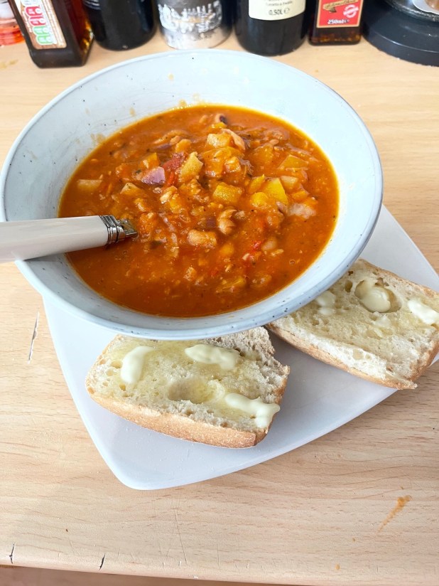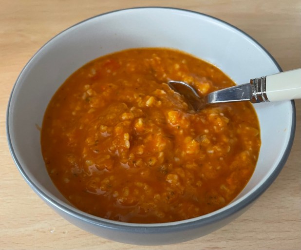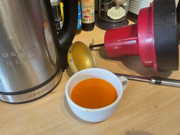When we returned from holiday we were determined to eat more healthily, low carbs and more vegetables. So we stocked up with veg and began our campaign of Salads, Vegetables, and Chicken Marlarkys. This soup returns us to the “use up what’s left” style of soup and has turned out to be a crowd pleaser, well Mrs Riley likes it, and that’s okay by me!