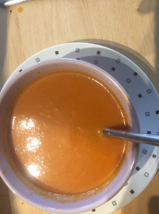 This is a triumph of a smooth, creamy and very tasty soup. If I didn’t know better I would say that I have happened onto a medical miracle. My skills as a soupy alchemist are finally coming to the fore as I recover from my brush with man-flu.