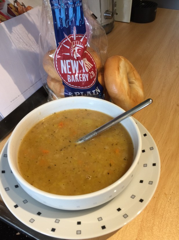 I decided to make some soup on Saturday as a way to relax myself into the weekend proper. Lots of winter veg, chicken stock in good basic soup.  So my intention was to make it comforting and full of flavour, it also needs to be chunky to give us a warming texture to the soup. This approach alongside a New York Bagel, toasted or not, buttered or not its all up to you. Enjoy!